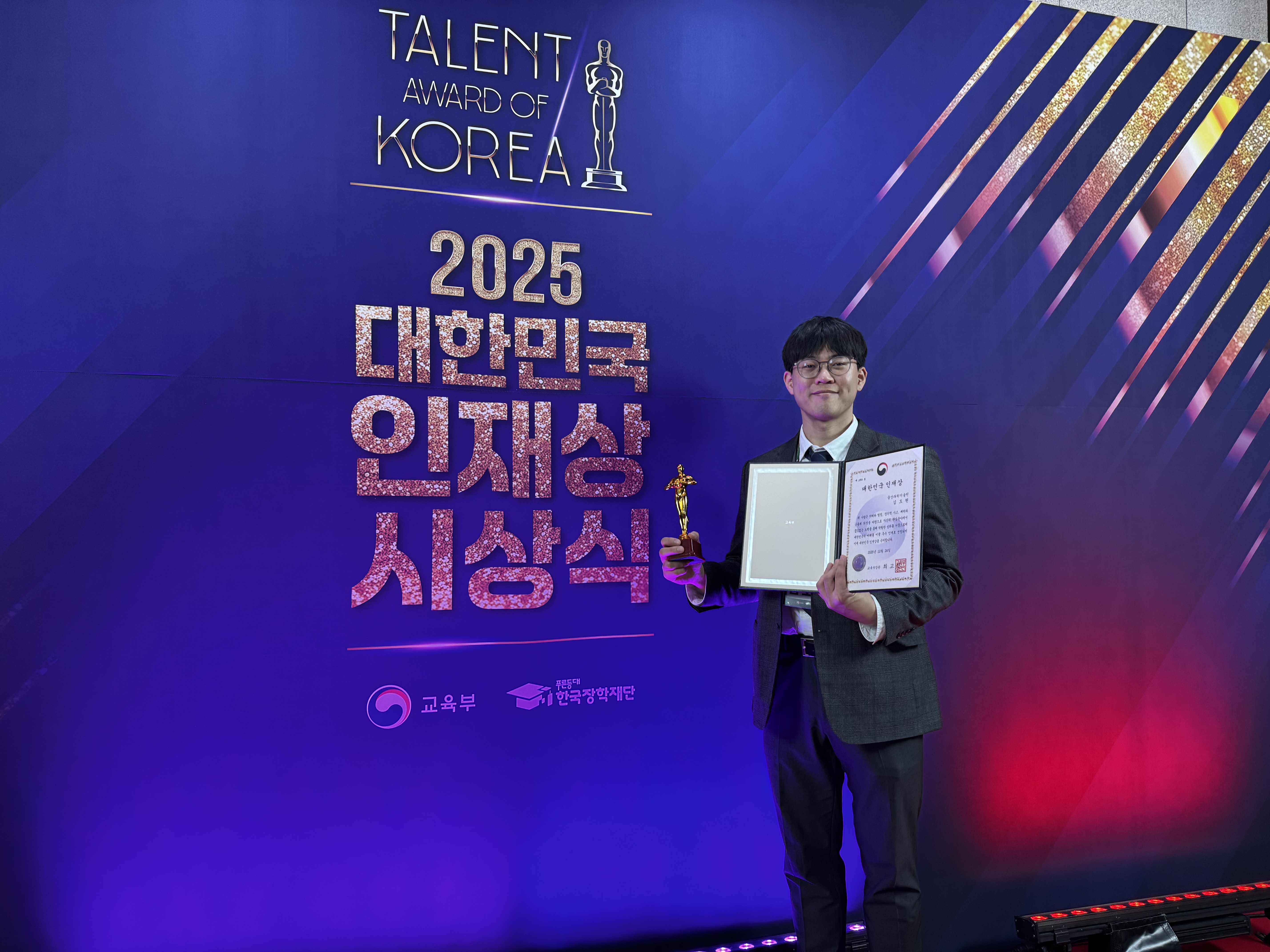 UNIST 화학과 김도현 박사가 24일 정부세종컨벤션센터에서 ‘2025 대한민국 인재상(부총리 겸 교육부장관상)’을 수상했다.