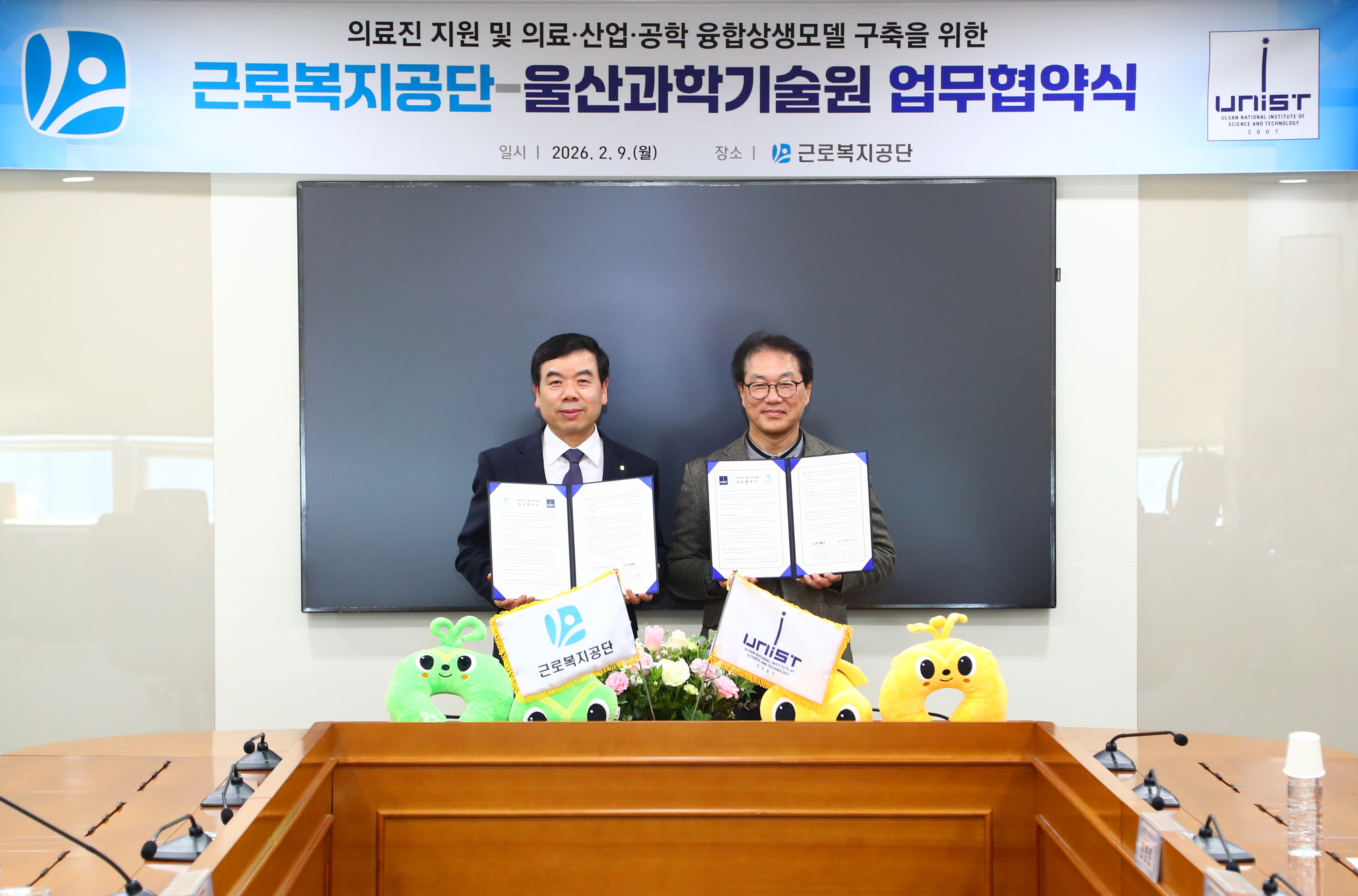 UNIST와 근로복지공단(이사장 박종길)은 9일 근로복지공단 본사에서 울산 산재전문 공공병원을 중심으로 한 의료·산업·공학 융합 상생 모델 구축을 위한 업무협약(MOU)을 체결했다.