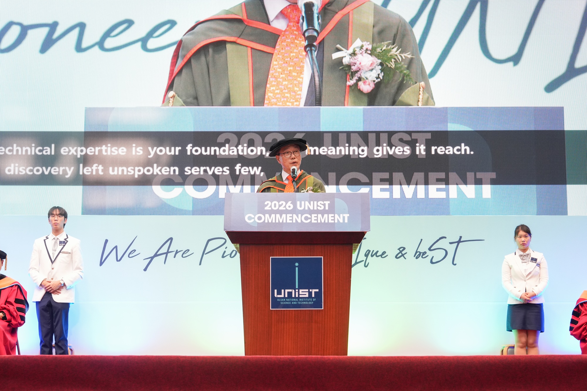 오늘 우리는 정든 교정을 떠나 세상이라는 거대한 연구실로 첫발을 내딛는 졸업생들의 당당한 출사표를 마주하고 있습니다. UNIST의 모든 구성원을 대표하여, 지난 수년간의 인고를 견디고 값진 성취를 이뤄낸 여러분께 진심으로 축하의 마음을 전합니다.