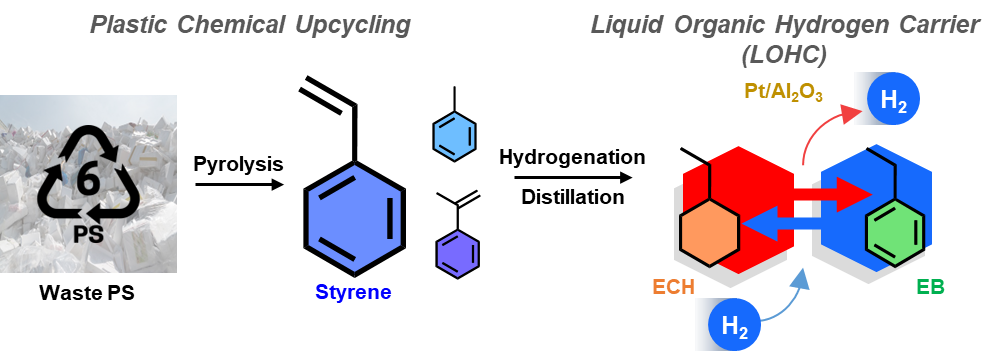 그림2. 폴리스타이렌의 업사이클링을 통한 액상 유기 수소 운반체로의 활용한 기술 모식도.