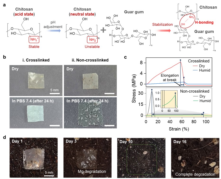 1.연구배경 인간의 신경계는 극저전력(1-10 fJ) 수준의 전기적 자극으로도 신호를 처리하고 반복 자극을 통해 학습과 기억을 형성하는 뛰어난 적응성을 갖고 있다. 이러한 생물학적 시냅스 기능을 모방한 인공 시냅스 연구는 차세대 뉴로모픽 전자소자의 핵심 분야로 주목받고 있지만, 기존 생분해성 물질 기반의 인공 시냅스들은 환경 불안정성, 짧은 장기기억 유지시간, 상대적으로 높은 전력의 필요, 그리고 완전 생분해성 구현의 어려움 등 여러 한계를 가지고 있다. 이에 따라 생물학적 시냅스의 에너지 효율성과 학습 기능을 구현하면서도 환경에 안전하게 분해될 수 있는 새로운 구조의 인공 시냅스 개발이 요구됐다. 2.연구내용 이러한 문제를 해결하기 위해 키토산–구아검(CS–GG) 기반 이온활성층(IAL)과 셀룰로오스 아세테이트(CA) 기반 이온결합층 (IBL)을 적층한 완전 생분해성 다층 인공 시냅스(M-AS)를 개발했다. 이 소자는 전기 자극이 가해질 때 전기 자극 방향으로의 이온 이동과 IBL에서의 쌍극자 형성이 이루어지면서, IAL–IBL 계면에서 이온과 쌍극자와 전기적으로 결합하는 이온–쌍극자 결합(ion–dipole coupling, IDC) 메커니즘을 기반으로 일부 이온을 포획해 기억처럼 유지한다. 그 결과 이동성이 빠른 이온 (NaCl)의 활용으로 인한 생물학적 시냅스보다도 낮은 0.85 fJ의 초저전력으로의 동작과 반복 자극 시 장기기억(long-term memory)이 점진적으로 강화되어 최대 5944초 동안 유지되는 우수한 기억 성능을 보였다. 또한, CS–GG의 수소결합 기반 이중 네트워크 구조는 높은 내습성과 내열성을 제공해 기존 생분해성 소재의 물성적 한계를 극복했으며, Mg 전극을 포함한 모든 구성 요소가 16일 이내에 자연 분해되는 완전 생분해성을 입증했다. 더 나아가 개발된 시냅스를 열 감지 센서(서미스터)와 로봇 액추에이터에 통합해, 로봇이 열 자극을 학습·기억하고 위험을 스스로 판단해 반사적으로 반응하는 생체 모사형 인공 반사 시스템까지 구현함으로써 기술의 실제 응용 가능성을 확인하였다. 3.기대효과 이번 연구는 인공 시냅스 분야에서 초저전력·장기기억·기계적 안정성·완전 생분해성을 동시에 구현함으로써 차세대 뉴로모픽 디바이스 개발의 중요한 기반을 마련했다는 점에서 큰 의의를 가진다. 또한, 생체 모사 학습 기능을 갖춘 감각 모듈을 로봇 시스템에 적용할 수 있음을 보여줌으로써 향후 지능형 웨어러블 기기, 안전 모니터링 센서, 휴먼–머신 인터페이스(HMI), 나아가 사람처럼 감각을 학습하고 반응하는 휴머노이드 로봇 개발에도 기여 할 것으로 기대된다. 더불어 완전 생분해성 구조를 통해 환경 부담을 낮추고, 일회성 의료기기나 체내 삽입형 스마트 디바이스와 같은 친환경 전자소자 분야에서도 폭넓은 활용이 가능할 것으로 전망된다. |