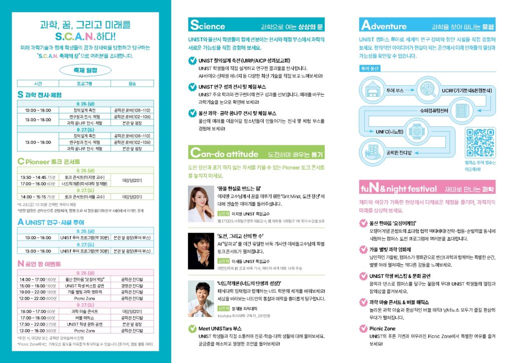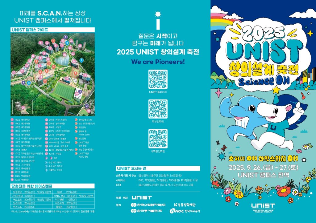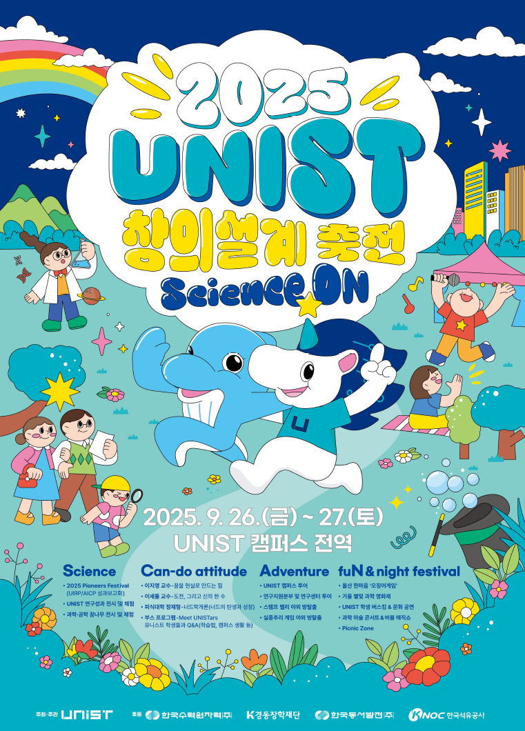 UNIST(총장 박종래)가 오는 26일부터 27일까지 이틀간 본원 캠퍼스에서 ‘2025 UNIST 창의설계 축전’을 연다. UNIST는 지역사회 성원 속에 세계적인 연구중심대학으로 성장했다. 이번 축전은 그간 축적한 지식과 기술을 공개하고, 창의적 성과를 시민과 나누는 과학문화 축제로 개최된다. 박종래 총장은 “UNIST는 모두가 꿈꾸고 상상하며 개척할 수 있는 플랫폼”이라고 강조해 왔다. 이번 행사는 그 비전을 실천하는 무대다. 학생들의 독창적인 아이디어와 결실이 사회와 연결돼 퍼져나가며, 대학과 지역이 동반자로서 미래 과학 인재를 길러내는 자리가 될 것으로 기대된다. 올해 축전의 부제는 ‘사이언스 온(Science ON)’, 과학의 스위치를 켠다는 뜻이다. UNIST 학생들이 만든 설계 작품과 연구 성과를 전시하고, 지역 초·중·고 학생과 교사, 학부모가 체험할 수 있는 프로그램도 확대했다. 축전 하이라이트는 UNIST 학생들의 아이디어가 빛나는 ‘창의설계 전시회’다. 공학관 로비와 본관 광장에 70여 점의 과학 전시와 연구 성과 체험 부스가 차려진다. AI, 재생에너지, 반도체, 양자, 바이오, 뇌과학 등 최신 분야가 한눈에 소개된다. 참가자들은 부스를 돌며 직접 과학을 경험하고, 스탬프를 모으면 기념품도 받을 수 있다. 특히, 울산 지역 중·고교 학생들의 창작물을 선보이는 ‘과학 꿈나무 전시체험 부스’가 운영된다. 청소년과 UNIST 학생들이 어울리며 과학·공학으로 교류하는 뜻깊은 기회다. 유명 연사들의 토크 콘서트도 이어진다. 행사 첫날, 이지영 특임교수가 ‘꿈을 현실로 만드는 힘’을 주제로 강연한다. 잇따라 유튜브 채널 피식대학 정재형이 ‘너드학개론(너드의 탄생과 성장)’으로 대중과 만난다. 오후 2시부터는 공학관 잔디밭에서 ‘울산 한마음 놀이’가 진행된다. 오징어게임 콘셉트를 응용한 협력형 액티비티다. UNIST 구성원과 시민이 어우러지면서 공동체 의식을 강화하고, 캠퍼스 문화를 누린다. 저녁에는 잔디밭이 영화관으로 바뀐다. 돗자리에 앉아 푸드트럭 음식을 곁들이며 ‘가을 별빛 과학 영화제’를 관람할 수 있다. 둘째 날에는 이세돌 특임교수가 청중 앞에 선다. 토크 주제는 ‘도전, 그리고 신의 한 수’다. 이어 대강당과 잔디밭에서는 과학 마술 공연과 버블쇼가 잇따른다. 또 학생들이 준비한 버스킹과 문화 공연이 대학본부 광장을 채운다. 음악, 무용, 연극이 차례로 펼쳐져 축제 분위기를 고조시킨다. 피크닉존도 마련돼 시민 누구나 편안히 머물 수 있다. 양일간 캠퍼스 투어도 제공된다. UNIST 연구장비교육·지원처와 연구센터 시설을 약 30분 동안 돌아보는 프로그램이다. 현장에서 신청하면 참여할 수 있다. 올해 축전은 지역과 함께하는 의미가 크다. 모든 프로그램은 무료로 개방된다. 박종래 총장은 “이번 축전을 통해 학생들의 성장 스토리가 시민들의 삶 속으로 스며들 것”이라며, “UNIST는 지역과 상생하는 대학으로서 과학기술의 가치를 공유하고 그 즐거움과 감동을 널리 전하고자 한다”고 밝혔다. 한편, 이번 행사는 UNIST가 주최하고, 한국수력원자력(주), 경동장학재단, 한국동서발전(주), 한국석유공사가 후원한다. 자세한 일정은 UNIST 홈페이지에서 확인할 수 있다. |