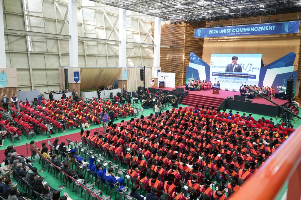 UNIST(총장 박종래)는 23일 오후 2시 실내체육관에서 2026학년도 학위수여식을 열었다. 박 총장은 “성공 공식에 안주하지 않고, 스스로를 깨뜨리는 창조적 파괴로 지도에 없는 길을 내야 한다”며 “질문을 설계하고 미래를 만드는 개척자(Way Maker)가 돼 달라”고 졸업생들을 격려했다. 이날 학위를 받은 졸업생은 학사 347명, 석사 334명, 박사 202명 등 모두 883명이다. UNIST는 2009년 개교 이후 이날까지 학사 6,810명, 석사 2,742명, 박사 1,665명 등 총 1만1,217명의 과학기술 인재를 배출했다. 이번 학위수여식에는 구혁채 과기정통부 제1차관, 조무제 UNIST 초대 총장, 안효대 울산광역시 경제부시장, 이순걸 울주군수, 공진혁 울산광역시의회 운영위원장, 정우성 한국과학창의재단 이사장, 임채일 울산제일일보 대표 등이 참석했다. 행사는 학생 오케스트라 동아리 ‘유니스트라(UNISTRA)’의 축하 연주로 시작해 △학사행렬 △치사 △축사 △식사 △학위수여 △졸업생 대표연설 △교가 제창 순으로 진행됐다. 교내외 인사 1천여 명이 참석해 졸업생들의 새출발을 함께했다. 학부 우수졸업생 시상에서는 곽경환 학생(컴퓨터공학과)이 부총리 겸 과학기술정보통신부 장관상을 받았고, 임상현 학생(에너지화학공학과)이 이사장상, 김민종 학생(기계공학과)이 총장상을 각각 수상했다. 울산광역시장상은 김두하 학생(생명과학과), 울주군수상은 이연지 학생(바이오메디컬공학과)에게 돌아갔다. LS그룹상은 남은수 학생(에너지화학공학과)과 이창열 학생(물리학과)이 받았으며, 경동이노베이터상은 예현수 학생(컴퓨터공학과), 김성준 학생(화학과), 박성한 학생(경영과학부)이 수상자로 이름을 올렸다. 대학원 과정 최고 영예인 예봉상(UNIST Best Research Award)은 유지수 학생(신소재공학과)에게 수여됐다. 유지수 학생은 삼성휴먼테크논문대상 은상, 산학협력기술논문대회 동상 등 탁월한 학술·산학 성과를 거두고, SCI급 논문 11편을 발표하는 등 연구 역량을 인정받았다. 예봉상은 박사학위 논문 가운데 최우수작을 선정해 주어진다. 조무제 UNIST 초대 총장이 기부한 발전기금으로 마련됐으며, 그의 호 ‘예봉’을 따 이름 붙였다. 우수논문상은 김종범(에너지화학공학과), 김재호(인공지능대학원), 심영진(수리과학과), 박해찬(화학과) 학생이 받았다. 이날 축사에는 김성훈 업스테이지 대표와 민태기 에스엔에이치 부사장이 연단에 올랐다. 김 대표는 인공지능 연구자이자 창업가로, 민 부사장은 나로호 개발에 참여한 과학기술인이다. 두 연사는 “도전과 끈기로 각자의 분야에서 국가 발전에 기여하는 인재로 성장해 달라”고 당부했다. 박종래 총장은 학위수여식사에서 “실패를 자산으로 삼아 더 큰 도약에 나서길 바란다”며 “기술이 왜 필요한지, 그것이 인류의 삶을 어떻게 바꾸는지 동료와 함께 고민하고 책임과 사명감으로 세상을 움직이는 주역이 돼 달라”고 당부했다. 졸업생 대표 연설에서는 정인중 학생(컴퓨터공학과·학부 졸업)과 김종범 학생(에너지화학공학과·대학원 졸업), 수라이야 자한 리자(Suraiya Jahan Liza) 학생(바이오메디컬공학과·대학원 졸업)이 맡아, 창업·연구·삶의 위기를 통과해온 각자의 궤적을 UNIST식 성장으로 풀어냈다. UNIST 학생기업 ‘클래스101’ 창업 멤버였던 정 씨는 재학 중 두 번 창업해 한 회사를 매각했고, 학교를 떠났다가 다시 복학해 12년 만에 학위를 받았다. 그는 “사람들이 좋아한다는 사실만 붙잡고 달리다 보면 정작 풀어야 할 문제를 놓치기 쉽다”며 “답을 찾기 전에 ‘지금 내 질문이 맞는가’를 먼저 점검하라”고 했다. 페로브스카이트 태양전지 연구로 성과를 낸 김 씨는 연구 초반 속도에 매달렸던 시간을 돌아보며 “빨리 달릴수록 벽이 더 크게 느껴질 때가 있었다”고 전했다. 그는 일상의 통찰이 전환점이 됐던 경험을 전하며 “중요한 건 얼마나 빨리 도착하느냐가 아니라, 어디를 향해 얼마나 깊이 고민하며 가고 있는가”라고 강조했다. 암 투병을 이겨내고 학위를 마친 리자 씨는 “앞을 가로막는 것은 시련 그 자체가 아니라, 그 앞에서 멈추기로 결정하는 순간”이라며 “작은 회복을 하나씩 쌓아 결국 다시 연구로 돌아올 수 있었다”고 말했다. 그는 앞으로도 연구를 통해 사람들의 삶에 도움이 되는 일을 이어가겠다고 밝혔다. (끝) |