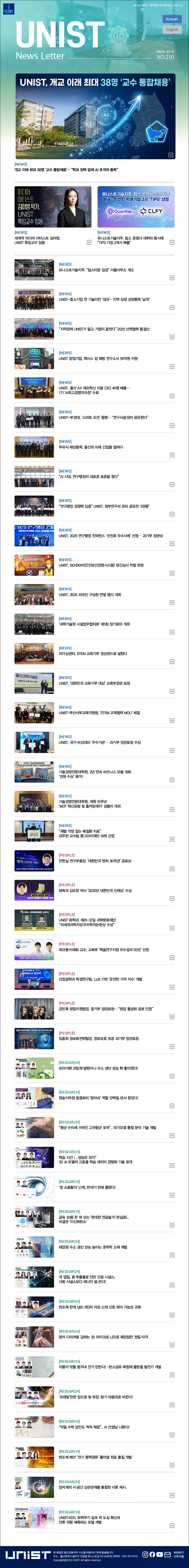 UNIST Korean English 개교 이래 최대 38명 ‘교수 통합채용’… “학과 장벽 없애 AI 초격차 총력” 세계적 미디어 아티스트 김아영, UNIST 특임교수 임용 유니스트기술지주, 팁스 운영사 데뷔와 동시에 “TIPS 기업 2개사 배출” 유니스트기술지주, “팁스타운 입성” 서울사무소 개소 UNIST-중소기업 첫 기술이전 ‘성과’··· 지역 상생 성장동력 ‘날개’ “지역경제 UNIST가 밀고 기업이 끌었다” 2025 산학협력 총결산 UNIST 창업기업, 텍사스 암 예방 연구소서 55억원 지원 UNIST, 울산 AX 제조혁신 이끌 CEO 40명 배출… 1기 ‘AI최고경영자과정’ 수료 UNIST-부경대, ‘스마트 오션’ 동맹… “연구시설·장비 공유한다” 부유식 해상풍력, 울산의 미래 산업을 말하다 “AI 시대, 연구행정의 새로운 표준을 찾다” “연구행정 경쟁력 입증” UNIST, 정부연구비 관리 공모전 ‘2관왕’ UNIST, 2025 연구행정 컨퍼런스 ‘선진화 우수사례’ 선정… 과기부 장관상 UNIST, ISO45001(안전보건경영시스템) 갱신심사 적합 판정 UNIST, 2025 외국인 구성원 연말 행사 개최 ‘과학기술원 시설업무협의회’ 제1회 정기회의 개최 리더십센터, STEM 교육기부 경상권으로 넓혔다 UNIST, ‘대한민국 교육기부 대상’ 교육부장관 표창 UNIST–부산서부교육지원청, ‘STEM 교육협력 MOU’ 체결 UNIST, 국가 비상대비 ‘우수기관’… 과기부 장관표창 수상 기술경영전문대학원, 2년 연속 비즈니스 모델 대회 ‘전원 수상’ 쾌거! “재발 걱정 없는 폐질환 치료” 강주헌 교수팀 동그라미재단 과제 선정 기술경영전문대학원, 개원 10주년 ‘MOT 혁신포럼 및 홈커밍데이’ 성황리 개최 UNIST 화학과, 에쓰-오일 과학문화재단 “차세대과학자상·우수학위논문상 수상” 화학과 김도현 박사 ‘2025년 대한민국 인재상’ 수상 안현실 연구부총장, ‘대한민국 벤처 30주년’ 공로상 강민욱 창업지원팀장, 중기부 장관표창… “창업 활성화 공로 인정” 산업공학과 학생연구팀, LLM 기반 ‘유연탄 가격 지수’ 개발 최규동·이재화 교수, 교육부 ‘학술연구지원 우수성과 50선’ 선정 프라이팬 코팅제 발랐더니 수소 생산 성능 확 좋아졌다! 임종희 정보화전략팀장, 정보보호 유공 과기부 장관표창 원숭이두창 중증화의 ‘방아쇠’ 역할 단백질 센서 찾았다! “평균 수치에 가려진 고위험군 포착”.. 대기오염 통합 분석 기술 개발 학습 시간↓, 성능은 유지” 3D AI 모델의 고효율 학습 데이터 경량화 기술 공개 ‘쌍 소용돌이’ 난제, 반세기 만에 풀렸다! 금속 30종 한 데 섞는 ‘현대판 연금술’이 현실로!.. 비결은 ‘이산화탄소’ 태양광 수소 생산 성능 높이는 초박막 소재 개발 게 껍질, 콩 추출물로 만든 인공 시냅스, 사람 시냅스보다 에너지 덜 쓴다! 반도체 한계 넘는 제3의 자성 소재 신호 제어 가능성 규명 문어 다리처럼 감싸는 3D 마이크로 LED로 췌장암만 정밀 타격 지붕이 빗물 튕겨내 전기 만든다!…탄소섬유 복합재 물방울 발전기 개발 ‘모래알’만한 칩으로 빛 파장, 밝기 마음대로 바꾼다! “악필 수학 답안도 척척 채점”.. AI 선생님 나왔다! 반도체 배선 ‘전기 동맥경화’ 뚫어낼 원료 물질 개발 양자계의 시·공간 상관관계를 통합한 이론 제시 UNIST·ADD, 화학무기 살포 뒤 도심 확산과 잔류 위험 예측하는 모델 개발 UNIST 홈페이지 인스타그램 페이스북 유튜브 메일 추천하기 구독거절
