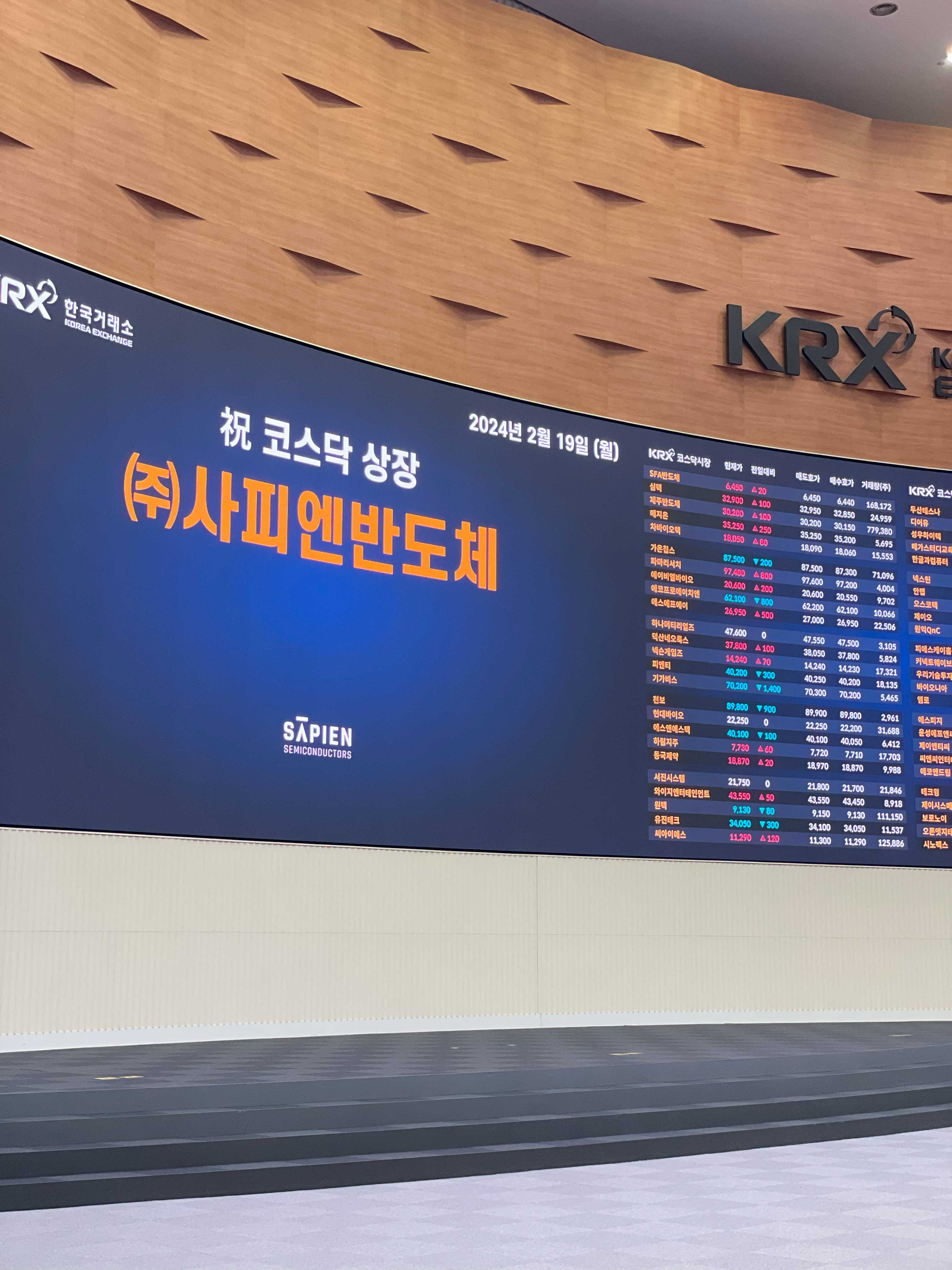 2024년 2월 19일, 사피엔반도체가 코스닥 상장기업이 됐다. 기술특례상장이라 시장환경에 영향을 많이 받는다는 점을 고려해 SPAC 합병 방식을 선택했다. | 사진: 사피엔반도체 제공