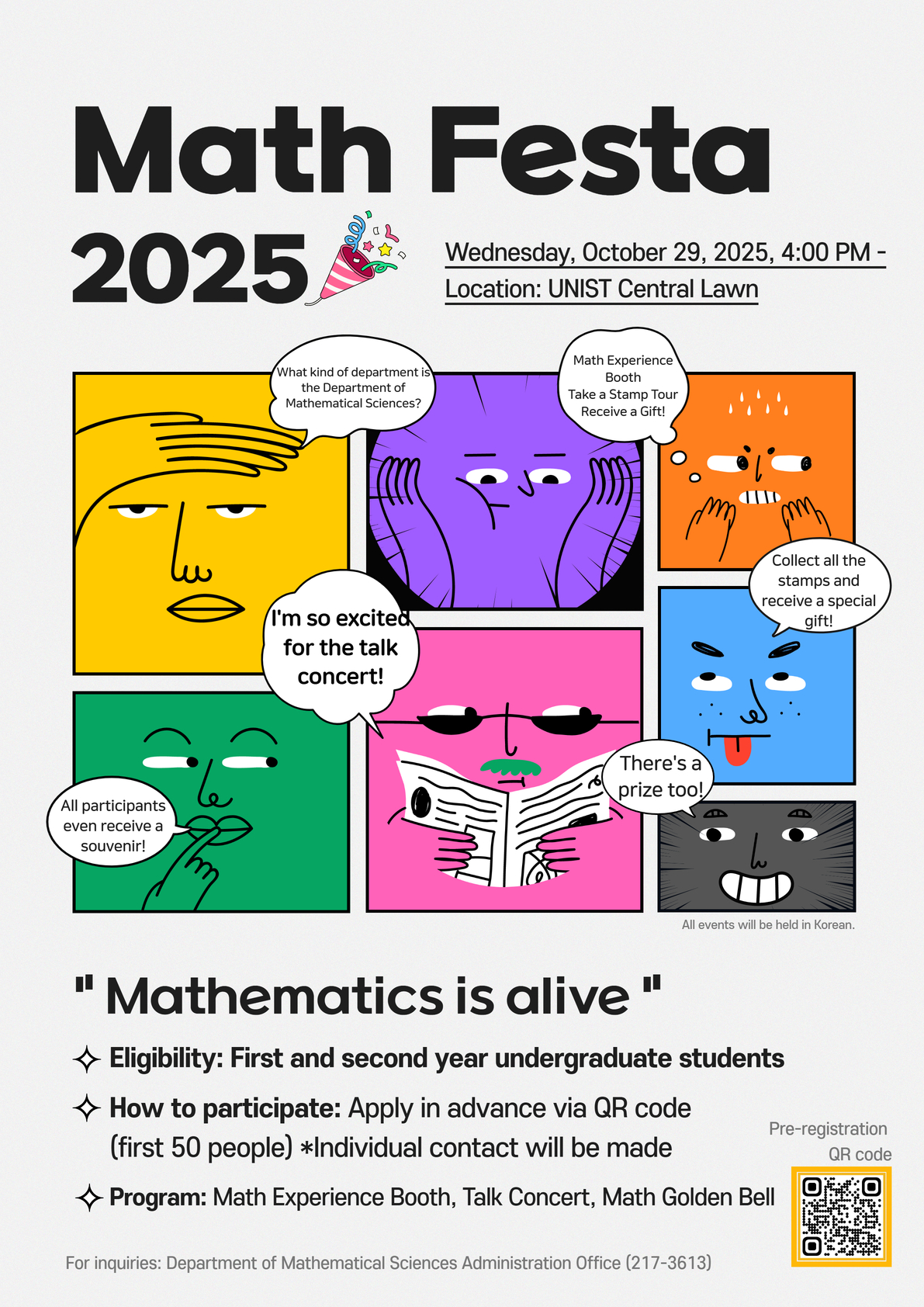 Department Head Kim emphasized, “We hope this Math Festa inspires students to see mathematics not merely as solving problems but as a powerful tool to open doors to the future and industry. Through engaging activities and insightful lectures, students will experience the vital connections between mathematics, AI, and technological innovation.”